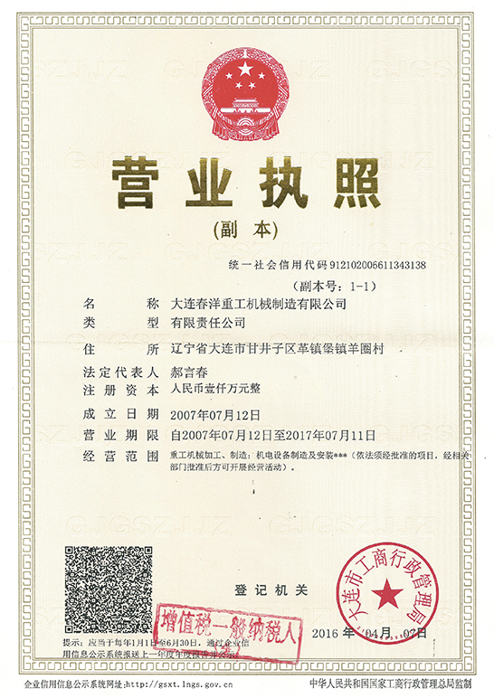 大連春洋重工機(jī)械制造有限公司(簡(jiǎn)稱:春洋重工),坐落于依山傍海、交通便利的大連甘井子區(qū)革鎮(zhèn)堡羊圈工業(yè)園。 大連春洋重工機(jī)械制造有限公司專業(yè)生產(chǎn)下頂拉式卷板機(jī)、10MN-165MN快鍛油壓機(jī)及大型液壓站、減速機(jī)、液壓缸、大型液壓卷板機(jī)專用調(diào)心軸承、翻盤機(jī)、焊接滾輪架等,具有較輕的設(shè)計(jì)和生產(chǎn)能力,另?yè)碛幸睙?、發(fā)電等大型鋼結(jié)構(gòu)普通焊接、特焊、機(jī)械加工、裝配的生產(chǎn)能力。 2012年根據(jù)市場(chǎng)需求,推出了金屬厚壁小直徑筒體冷壓成型技術(shù),成為一項(xiàng)特色產(chǎn)品,目前為國(guó)內(nèi)多家企業(yè)外協(xié),取得了良好的經(jīng)濟(jì)效益和社會(huì)效益。 2013年建立了大連春洋貿(mào)易有限公司,隸屬于大連春洋重工機(jī)械制作有限公司,具有獨(dú)立的進(jìn)出口權(quán),主要從事對(duì)日本,歐美等國(guó)有關(guān)機(jī)械加工方面的進(jìn)出口貿(mào)易。2014年建立了大連荷花灣家庭農(nóng)場(chǎng)。大連春洋重工機(jī)械制作有限公司現(xiàn)有員工200余人,其中各類專業(yè)技術(shù)人員40余人,公司占地面積近7萬(wàn)平方米,其中建筑面積近4萬(wàn)平方米,擁有8個(gè)車間、3個(gè)露天吊裝場(chǎng)地。 春洋重工奉行“創(chuàng)建一流企業(yè)、造就一流人才、做出一流貢獻(xiàn)”的企業(yè)理念,“安全,節(jié)能,高效,優(yōu)質(zhì)”的服務(wù)宗旨,依托良好的外部環(huán)境和政策支持,快速發(fā)展,真誠(chéng)為國(guó)內(nèi)外商客進(jìn)行更廣泛的合作與交談。
